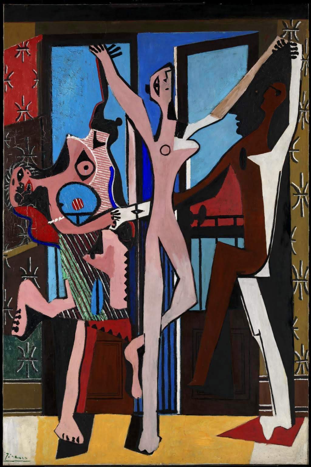 La danza o Los tres bailarines (1925) fue el comienzo de una catarsis personal y artística. El cuadro se había esbozado en 1923 como una representación realista de bailarines de ballet ensayando. Volvió a retomar el cuadro a comienzos de 1925. Mientras Picasso estaba trabajando en ello, su viejo amigo Ramon Pichot murió. La mayoría de los historiadores aceptan que el trío representa su sentimiento por la muerte de su amigo. Sin embargo, otros escritores han interpretado la violencia en la pintura como una expresión de su ira cada vez más profunda con su esposa Olga y el mundo de la vida doméstica en el que ella lo había enjaulado. Ciertamente, las imágenes de danza en esta pintura de 1925 no podrían ser más diferentes del trabajo que Picasso estaba produciendo unos años antes, cuando se enamoró de Olga y del ballet. Recordar estos eventos transformó el enfoque de Picasso. Las figuras angulares distorsionadas, los colores ásperos y las superficies de pintura densamente trabajadas parecen expresar emociones violentas. Se inicia así el periodo expresionista y surrealista de la obra de Picasso